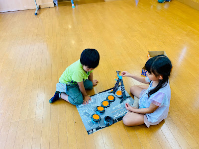 今回は中央に橋を置いて横断できるようにしました(^^)(5歳〜8歳クラス)